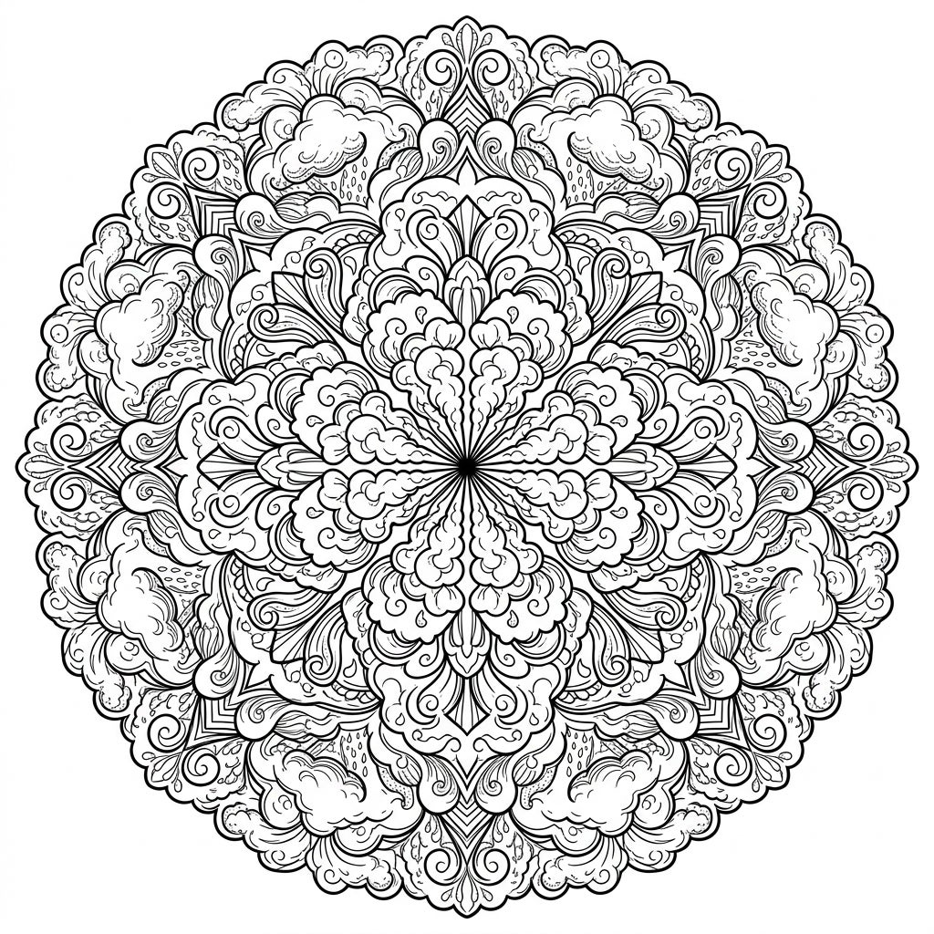 Unleash your creativity on this celestial canvas! Consider using a range of blues, grays, and whites to mimic the natural colors of altostratus clouds, or experiment with vibrant pastels to create a fantastical sky scene. Don't be afraid to add your own personal touches; perhaps use fine-tipped pens for the tiny raindrops or broad strokes for the cloud formations. Mandalas are also excellent for practicing mindful coloring, helping to reduce stress and improve focus. Let your imagination soar as you bring this beautiful cloud mandala to life, creating a masterpiece that reflects your inner calm.