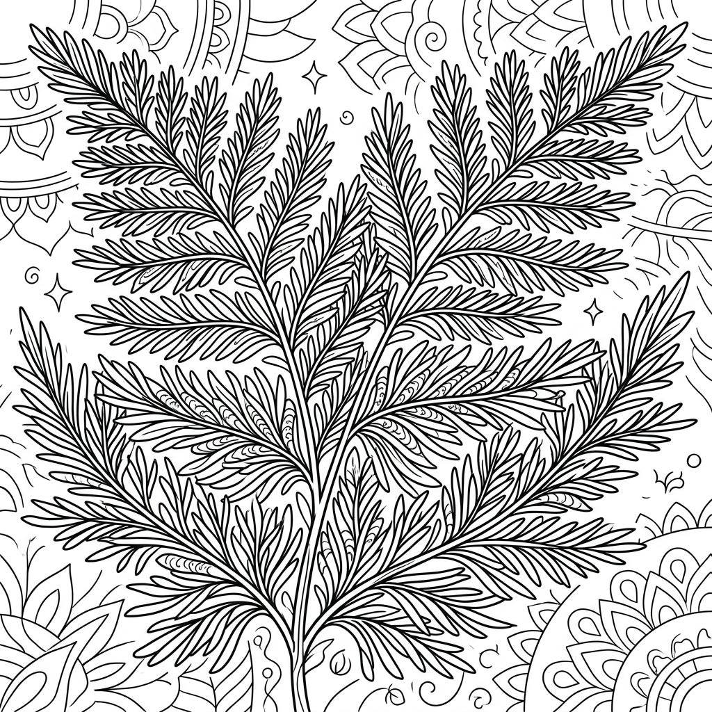 Discover a world of intricate beauty with this detailed asparagus fern coloring page, designed specifically for adults. Immerse yourself in its feathery fronds and delicate background patterns, perfect for mindful relaxation.