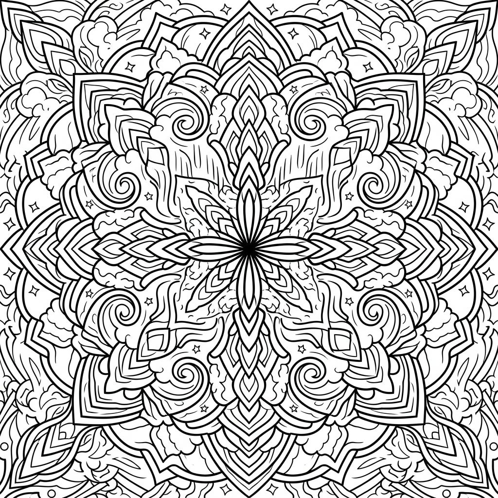 Step into a world where celestial wonder meets artistic meditation. This mandala is more than just a coloring page; it's an invitation to a tranquil journey, allowing your mind to wander through cosmic landscapes. As you fill in the details, envision the vibrant hues of the aurora borealis, finding a sense of calm and focus in the rhythmic beauty of this celestial design, perfect for a moment of mindful creativity.