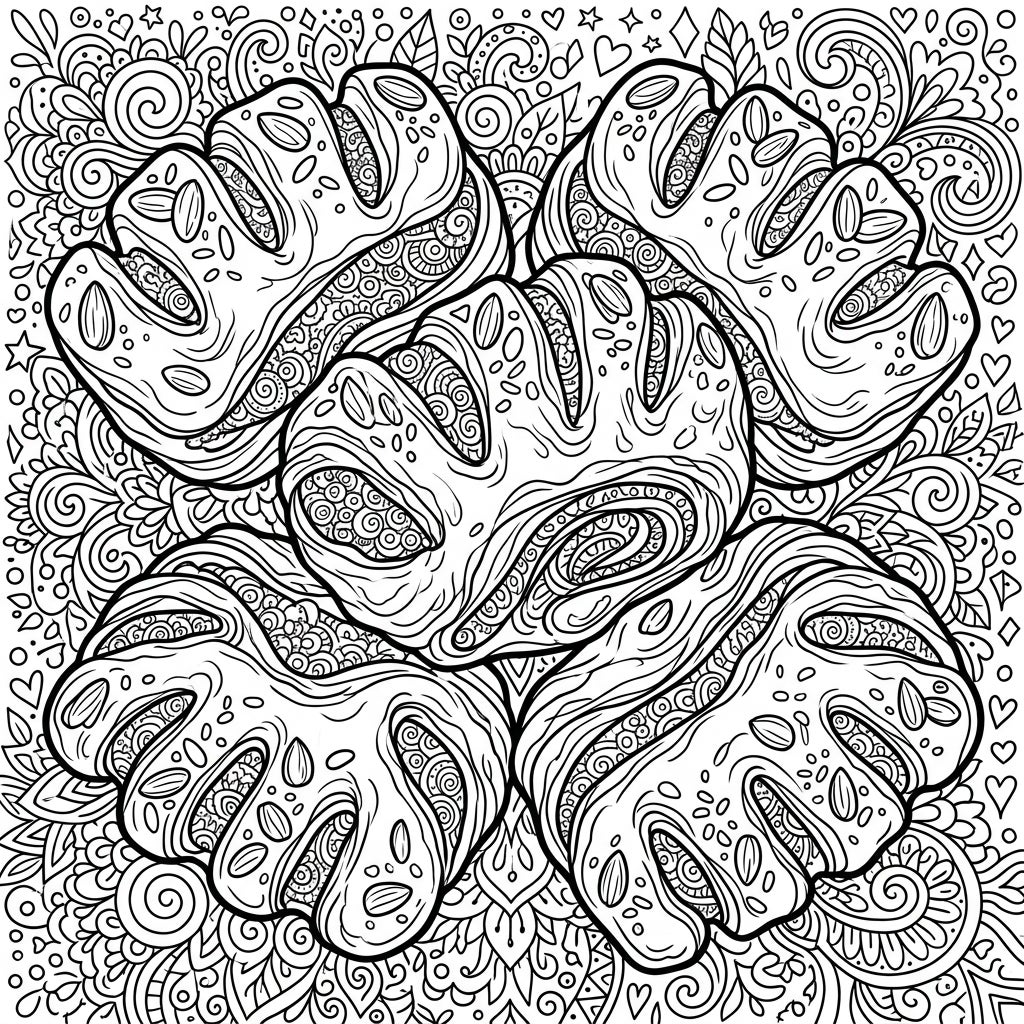 Unleash your creativity with this delightful coloring page featuring intricately designed bear claw pastries. Perfect for teens, this template offers a complex and engaging artistic challenge with its detailed patterns and sweet subject.