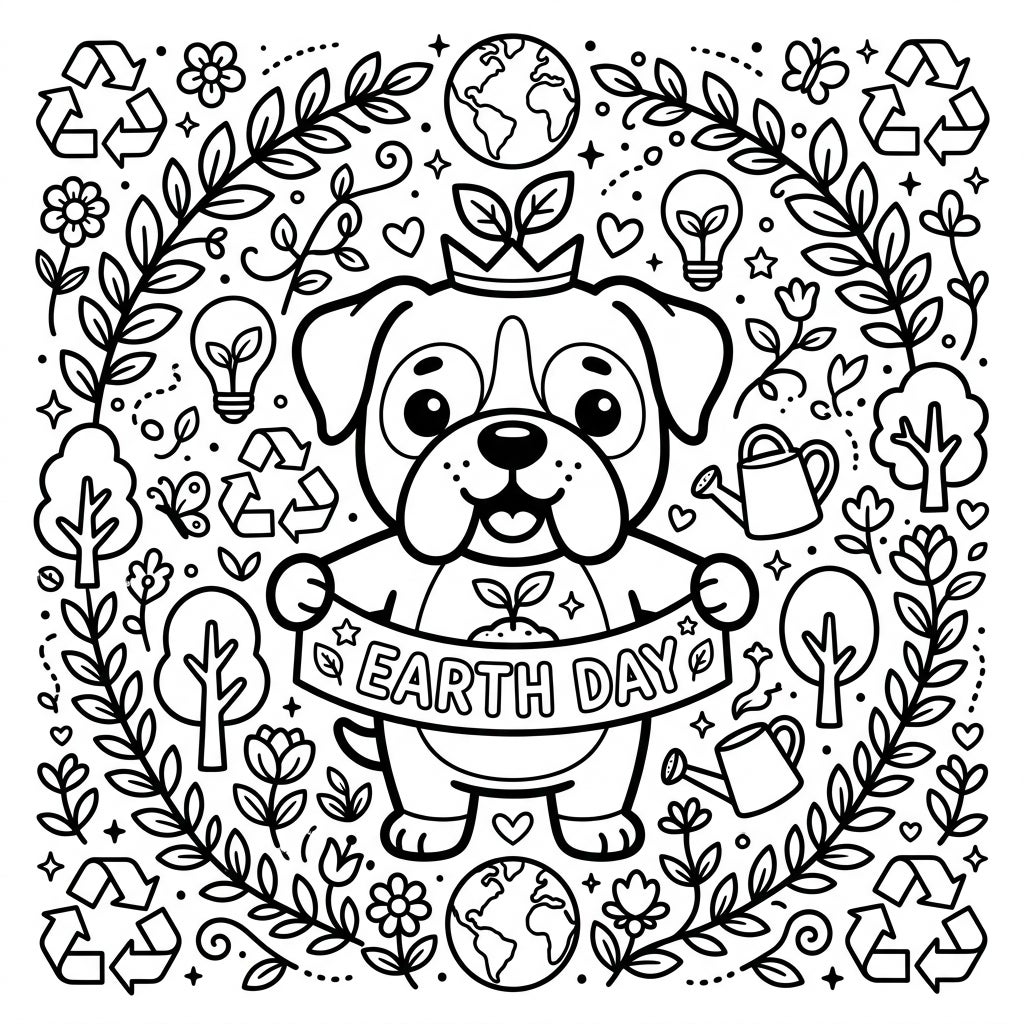 Get ready to celebrate Earth Day with an incredibly cute Kawaii Boxer, eagerly promoting environmental awareness. This charming coloring page is bursting with delightful eco-friendly elements, inviting you to bring them to life with your favorite colors.