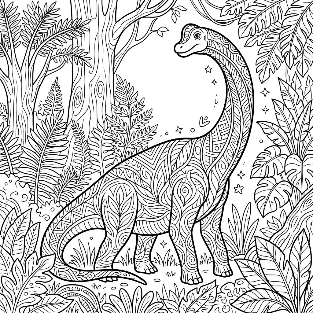 Whether you envision your Brachiosaurus in realistic earthy tones or a vibrant, fantastical palette, the possibilities are endless. Consider using analogous colors for the jungle foliage to create depth, or make the Brachiosaurus pop with contrasting hues. Don't forget to add your own creative flair to the background elements, like the subtle stars and swirls. Grab your favorite coloring tools and embark on an unforgettable prehistoric adventure!