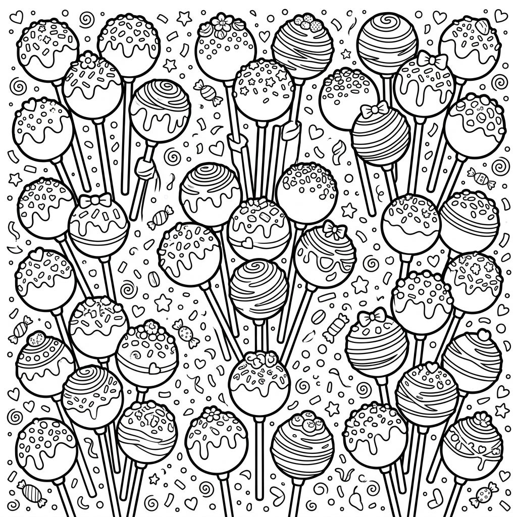 Indulge your creative side with this charming cake pop coloring page! Featuring a delectable array of decorated cake pops, it promises a sweet and engaging coloring experience for all ages.