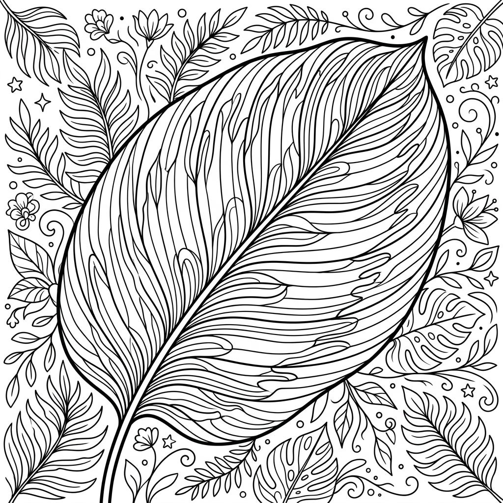 Immerse yourself in the captivating design of our Calathea Leaf coloring template. This exquisite page showcases a magnificent Calathea leaf at its heart, renowned for its strikingly intricate venation and unique shape. Surrounding this central masterpiece is a rich tapestry of complementary botanical motifs, including delicate flowers, various leafy sprigs, and whimsical swirls, all rendered with crisp, clean lines ready for your artistic touch. Every element is designed to provide ample opportunity for detailed coloring and creative expression, transforming simple outlines into a vibrant natural scene.