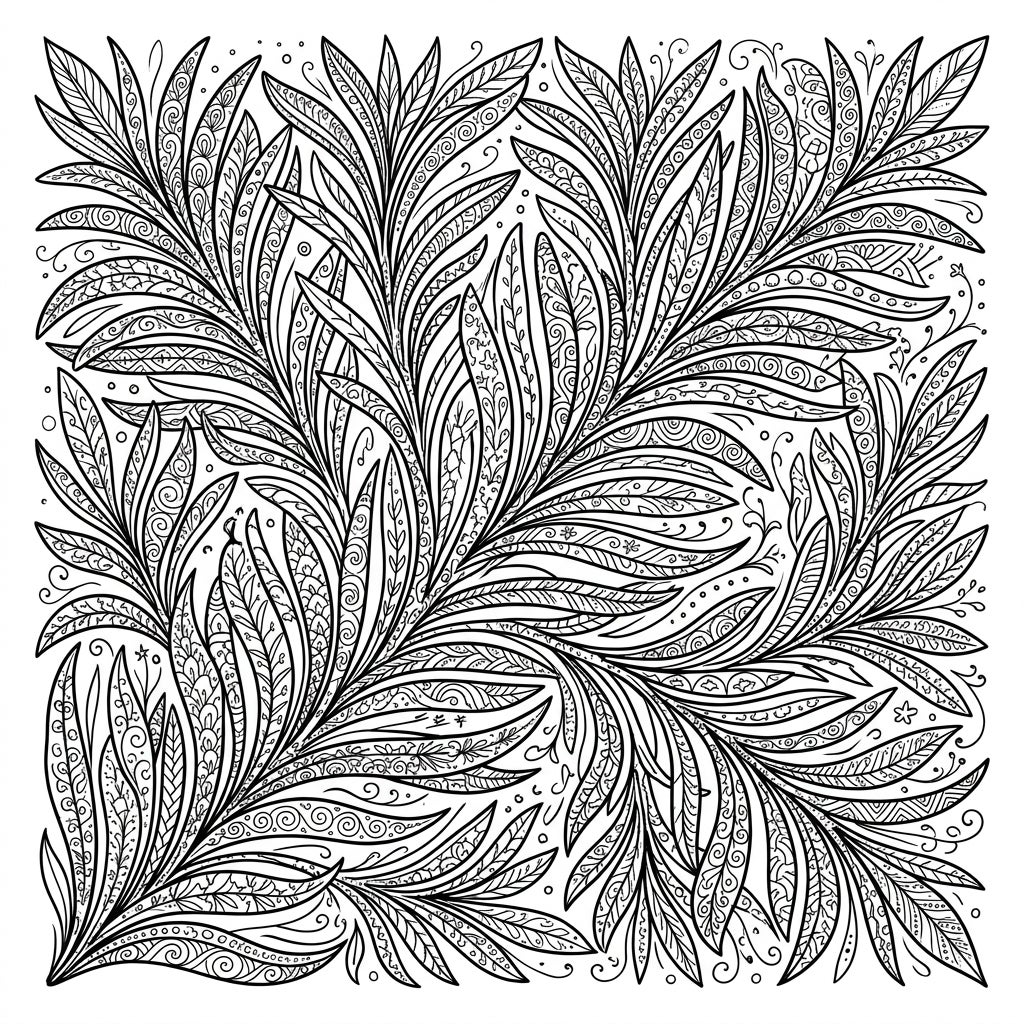Dive into a world of detailed botanical beauty with our Zentangle Carnation Leaves coloring page. This stunning design showcases the distinctive slender, grey-green foliage of carnation plants, rendered with an extraordinary level of intricacy. The entire square frame is densely packed with these patterned leaves, ensuring every corner of your canvas is an opportunity for artistic expression. Observe the flowing lines and organic shapes that form the backbone of this captivating floral composition.