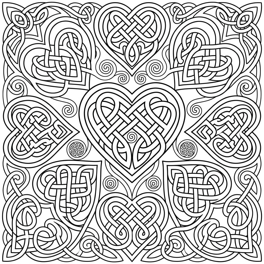 Bring these beautiful Celtic hearts to life with your favorite colors! Consider using a vibrant palette of greens, golds, and blues to honor traditional Celtic art, or experiment with softer pastels for a serene effect. For optimal enjoyment, use markers with broad tips, colored pencils, or even gel pens. Take your time with each intertwined section, allowing the mindful process to deepen your connection to this ancient and heartwarming symbolism.