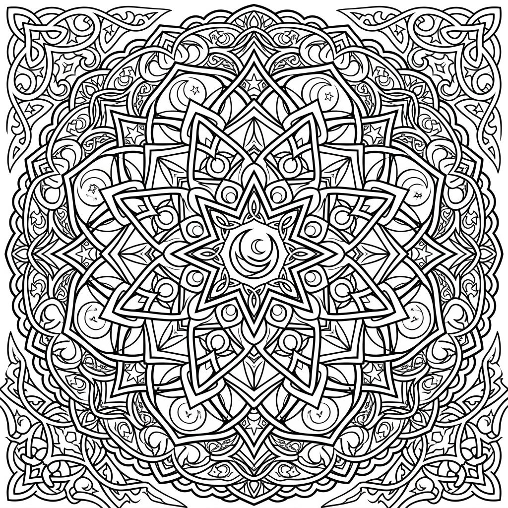Discover a world of intricate beauty with this stunning Celtic Moon Knots Mandala coloring page. Its perfectly symmetrical design, rich with ancient knotwork and serene moon symbols, offers a deeply meditative coloring experience.
