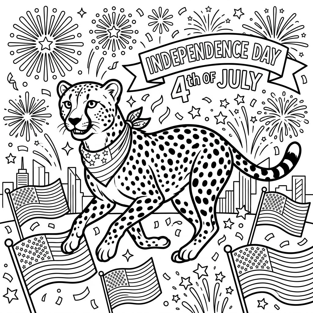 Get ready for a wild celebration with this unique Independence Day coloring page featuring a majestic cheetah. It's the perfect way to combine your love for animals and American festivities.