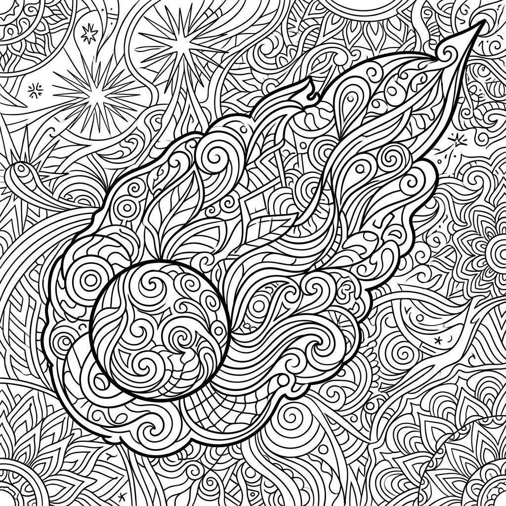 Embark on an extraordinary cosmic coloring adventure with this unique Zentangle comet coma design. Lose yourself in the mesmerizing details as you bring this celestial masterpiece to life.