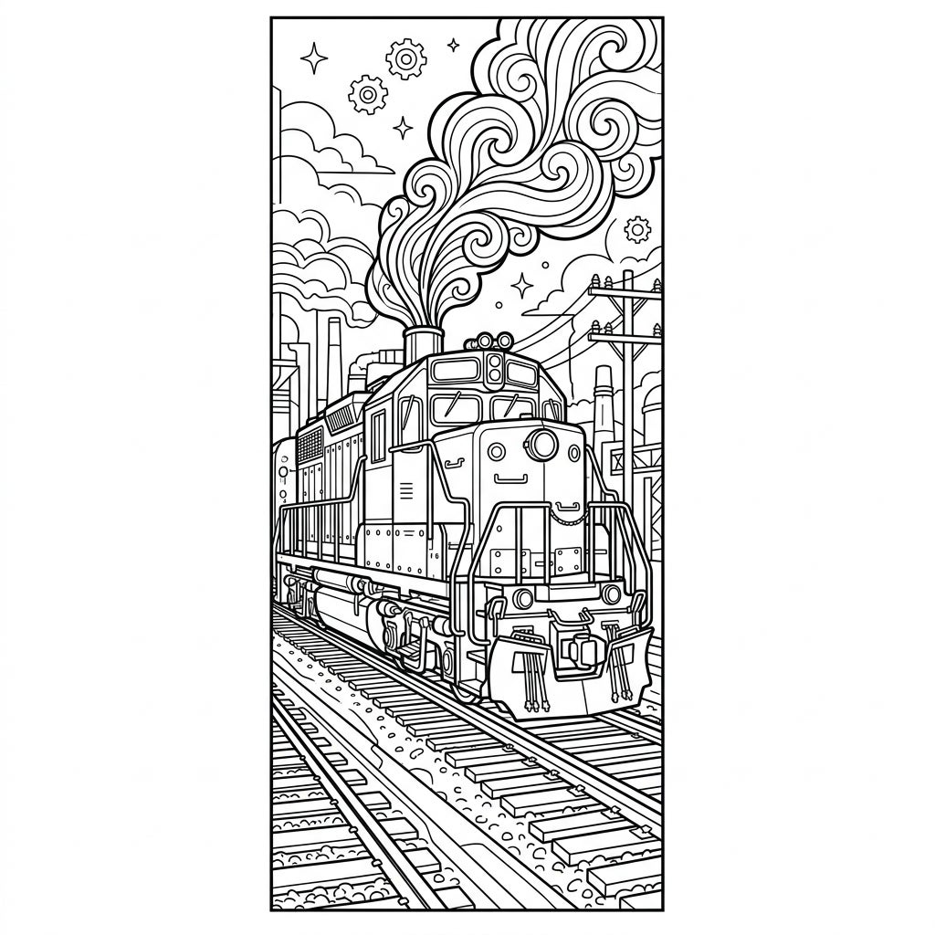 Experience the soothing joy of coloring as you transform this monochrome masterpiece into a vibrant tribute to railway engineering. This unique design isn't just a coloring page; it's a creative journey that culminates in a functional and personalized bookmark. Imagine the satisfaction of marking your favorite book with a piece of art you colored yourself, a testament to your passion for trains and creativity. It's an ideal activity for train enthusiasts of all ages, offering a peaceful escape and a practical keepsake.