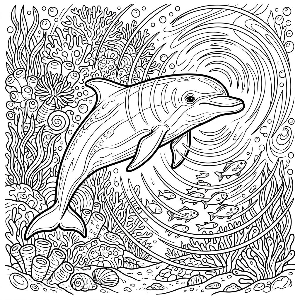 Unleash your creativity as you select colors for the shimmering scales of the fish, the diverse hues of the coral reef, and the sleek skin of the dolphin. Experiment with shades of blue and green for the water, perhaps adding lighter tones to represent the echolocation waves. This page is perfect for both beginner and experienced colorists, offering ample opportunity to practice shading, blending, and bringing a sense of movement and depth to this enchanting aquatic tableau.