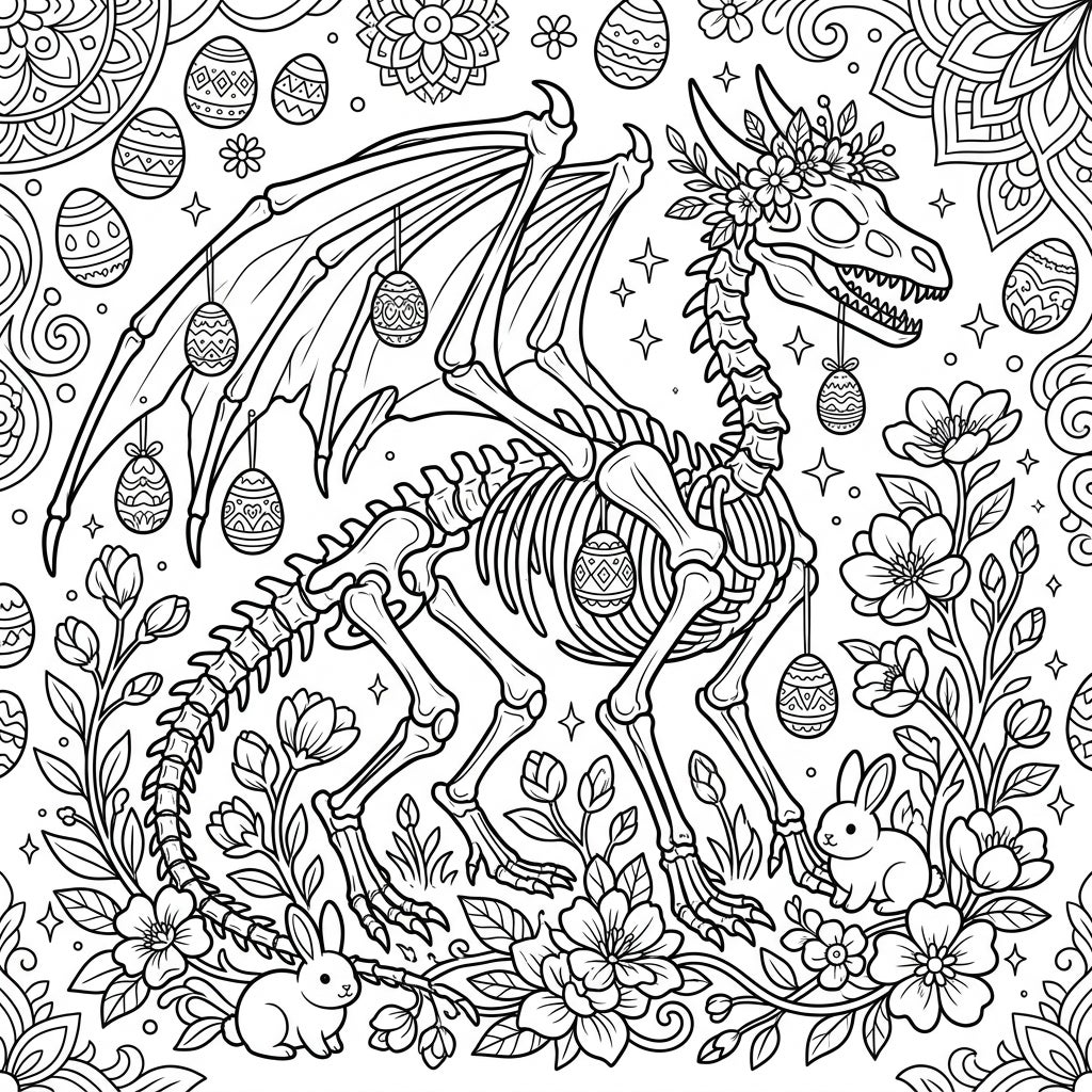 Dive into a wonderfully whimsical world with our Dragon Skeleton Easter coloring page. This intricate design blends fantasy and festivity for an unforgettable artistic journey.