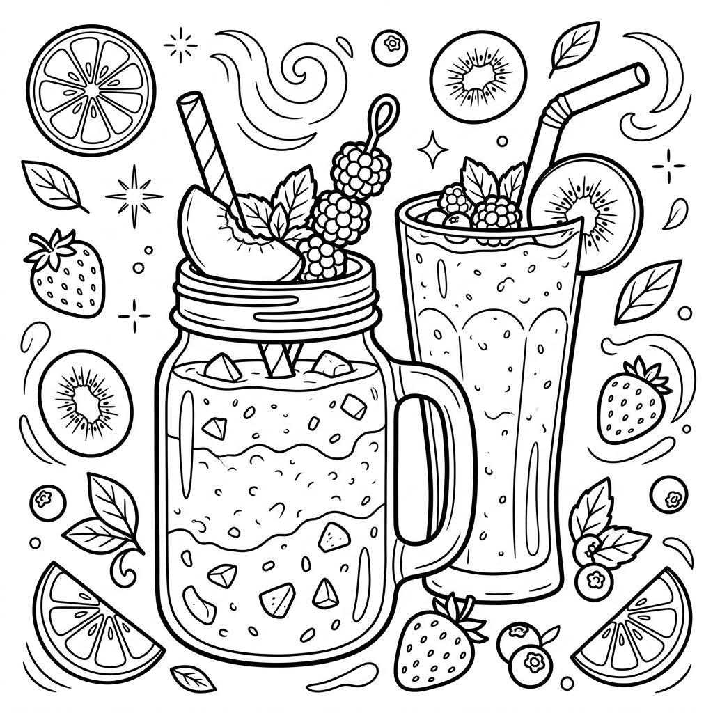Unleash your creativity and choose colors that make these fruit smoothies truly pop! Experiment with shades for the berries, oranges, and kiwi, and don't forget to add a personal touch to the smoothie drinks themselves – perhaps a blend of vibrant purples, reds, or greens. Consider using watercolors for a soft, blended effect or colored pencils for detailed shading. Whether you prefer realistic tones or imaginative palettes, this Fruit Smoothies coloring page offers a delightful escape into a world of refreshing color and calm.