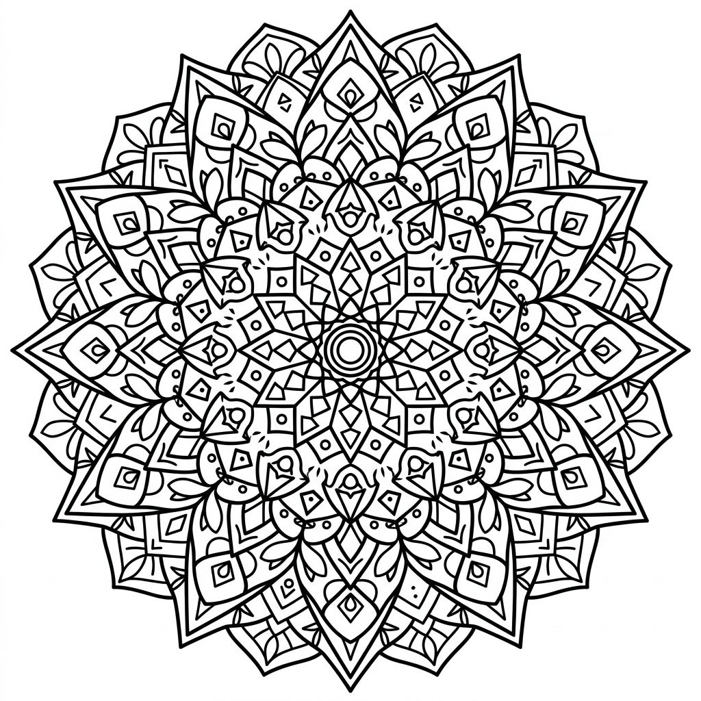 Unfold the beauty of spring with this stunning geometric mandala coloring page. Its intricate patterns, composed of precise shapes, invite you into a world of mindful creation.