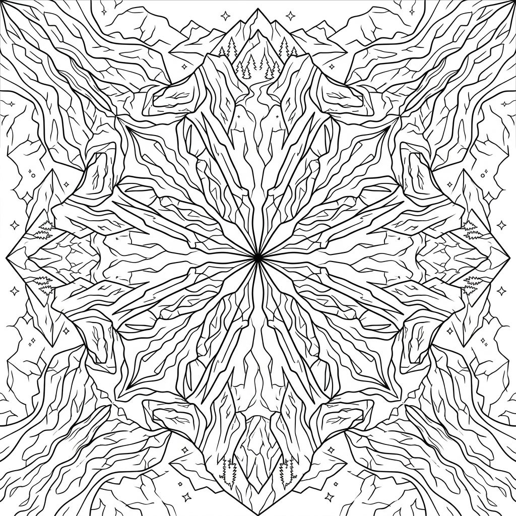Unleash your creativity and bring this frozen wonderland to life with your personal touch. Experiment with a palette of cool blues, icy whites, and subtle grays to capture the essence of glaciers and snow. Consider adding earthy greens and browns for the mountain flora and rocky outcrops, creating striking contrasts. Use shading techniques to emphasize the depth of the valleys and the sharp edges of ice formations. Whether you prefer vibrant hues or soft pastels, every stroke will transform this glacial mandala into a unique work of art.