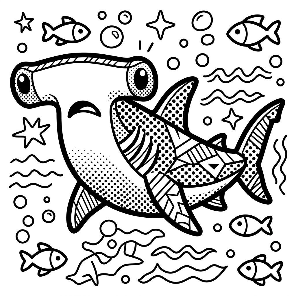 Dive into a world of vibrant creativity with this hammerhead shark coloring page, brought to life in an energetic Pop Art style. Featuring bold lines and dynamic patterns, it offers a truly unique and engaging artistic adventure.