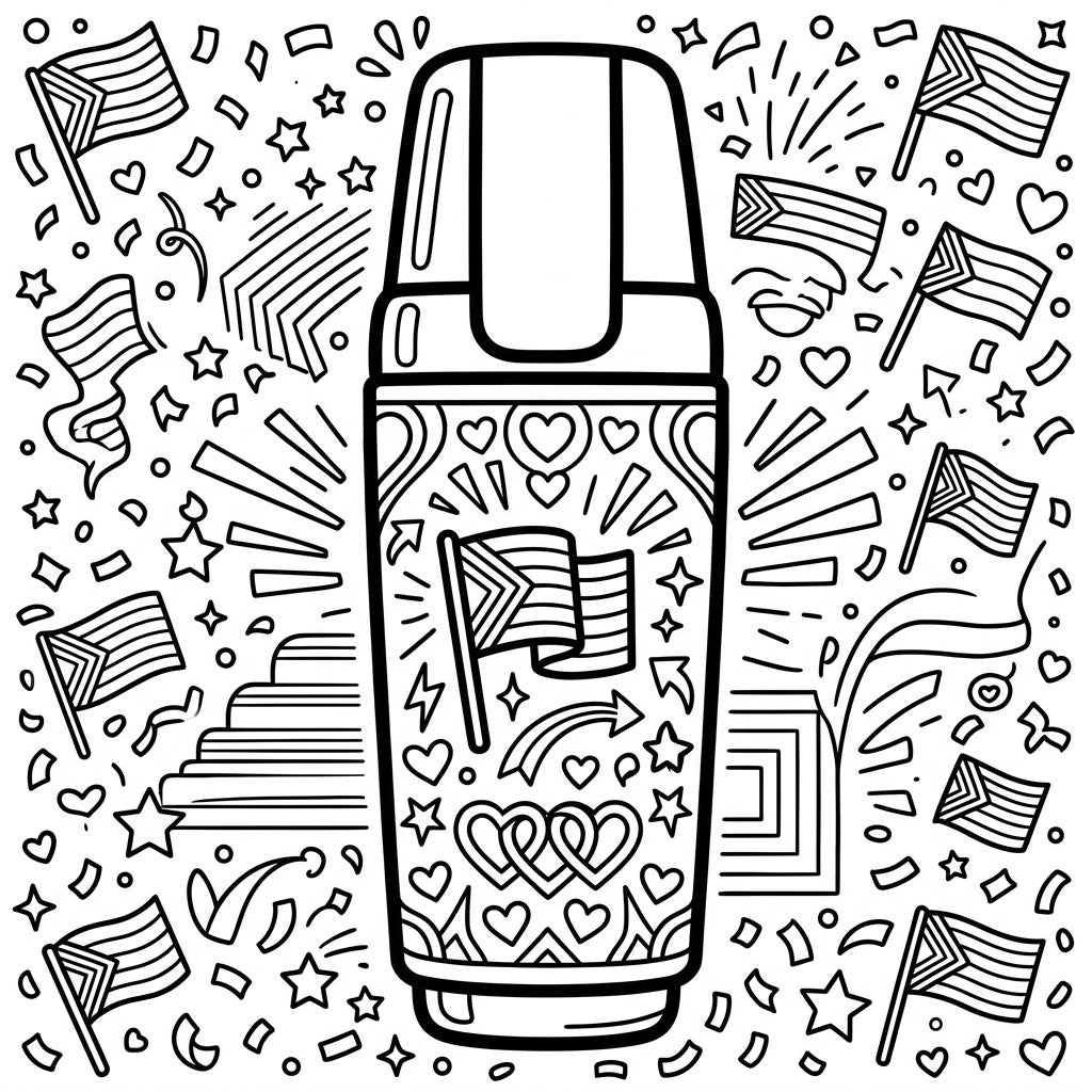 Celebrate unity and self-expression with this unique coloring page featuring a cosmetic highlighter adorned with joyful Pride-themed designs. Immerse yourself in a world of hearts, stars, and flags, ready for your most vibrant colors.