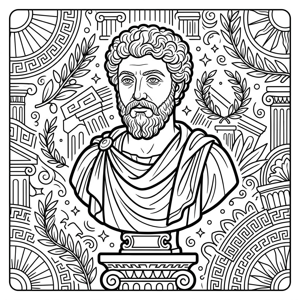 This coloring page offers more than just artistic expression; it's an invitation to explore history through art. As you fill in the intricate patterns and the thoughtful features of the bust, you'll connect with the timeless legacy of historical figures and the beauty of classical sculpture. It's an ideal activity for those who appreciate history, art, and the meditative joy of coloring, transporting you to an age of wisdom and monumental artistry.