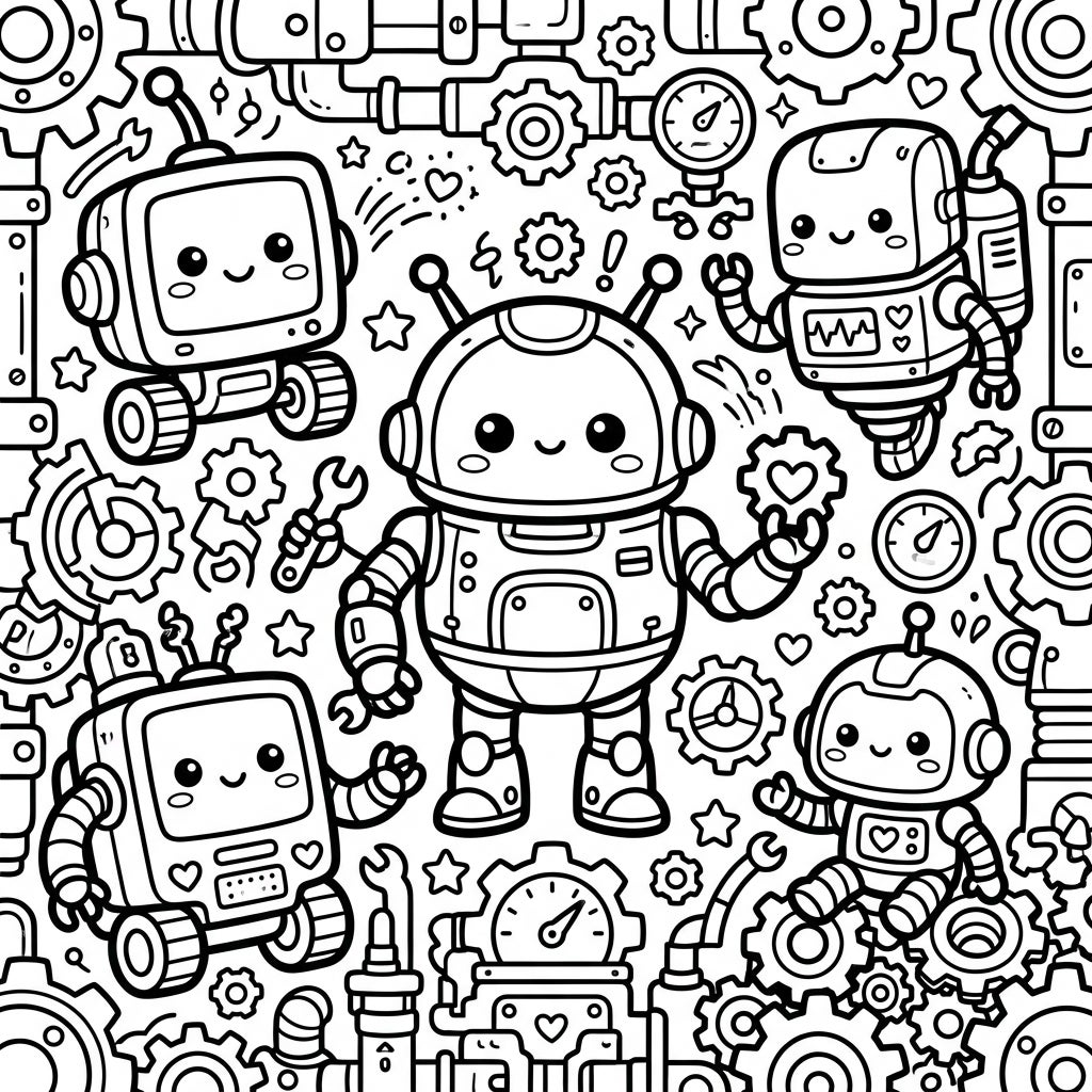 Escape into a world where engineering meets cuteness, offering a wonderfully relaxing and engaging coloring experience for all ages. This design sparks joy and invites colorists to explore their creativity by bringing these friendly human-machine hybrids to life. Whether you're a fan of futuristic themes, adorable characters, or simply seeking a meditative art project, this page provides a joyful canvas to unwind and express yourself.