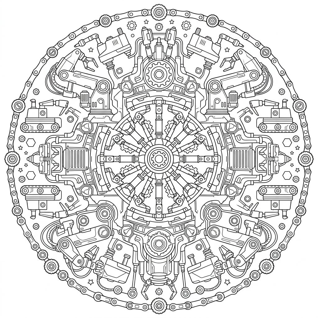 This unique mandala offers a refreshing twist on traditional designs, perfect for those who appreciate both technological innovation and the calming art of coloring. The repetition and precision inherent in the robotic elements, combined with the meditative flow of a mandala, create a truly engaging and therapeutic experience. It's an opportunity to find peace in complexity, focusing your mind as you meticulously fill each segment, bringing a sense of order and vibrant life to this mechanical universe. Whether you're a sci-fi enthusiast, a budding engineer, or simply seeking a challenge, this page promises hours of focused enjoyment.