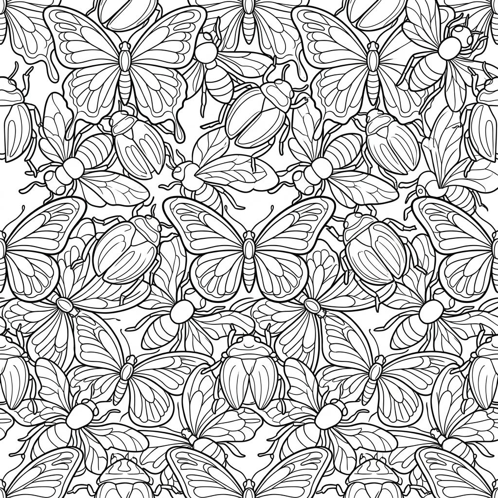 Explore a mesmerizing world of interlocking insects with this unique tessellation coloring page. Featuring butterflies, bees, and beetles, it offers a detailed and engaging artistic challenge for all ages.
