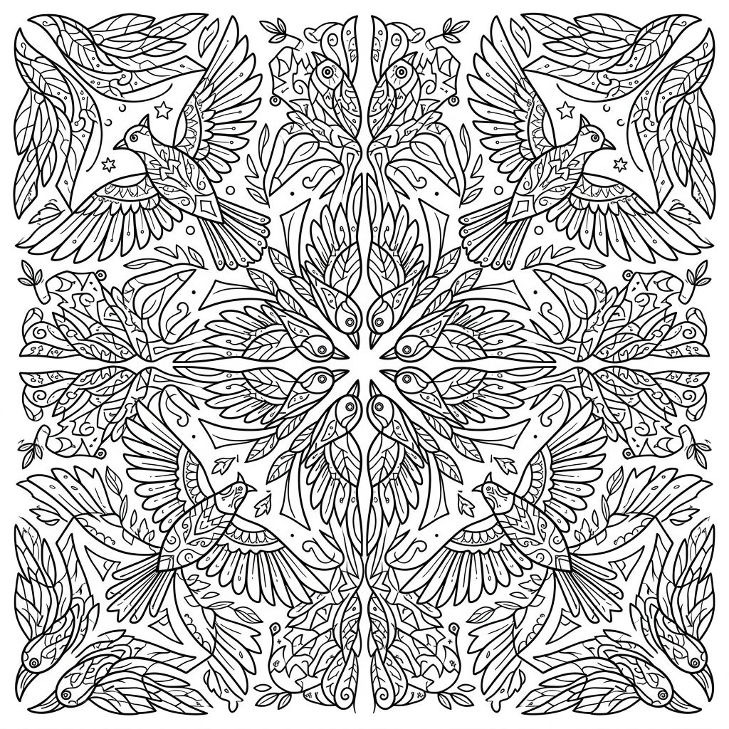 Explore a stunning symmetrical world with this kaleidoscope birds coloring page, specially crafted for teens. Its intricate avian patterns and delicate details offer a captivating and rewarding creative challenge.