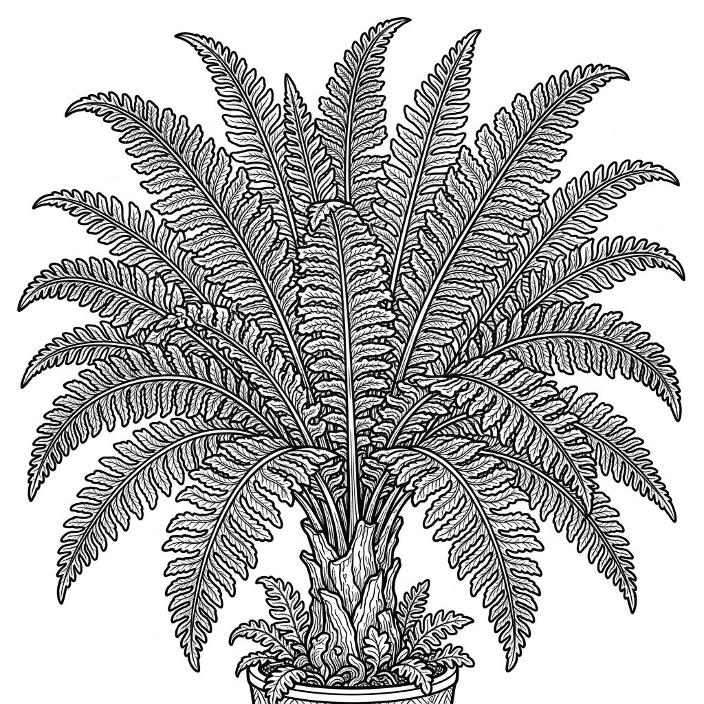 Immerse yourself in the lush beauty of our Kimberly Queen Fern coloring page, an exquisite botanical masterpiece designed for adult colorists. This illustration beautifully captures the robust and upright nature of the fern, with its distinctive ruffled fronds rendered in intricate detail. Each leaflet boasts delicate internal patterns and complex textures, providing a rich canvas for your artistic expression and filling the entire page with natural elegance.