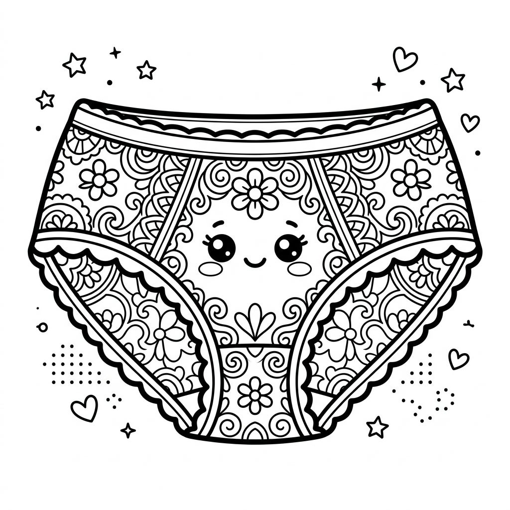 Dive into a world of cuteness with this charming Kawaii Lace Briefs coloring page, featuring a delightful design adorned with intricate floral patterns and an adorable face. Perfect for adding your personal touch and bringing this sweet underwear illustration to life with vibrant colors.