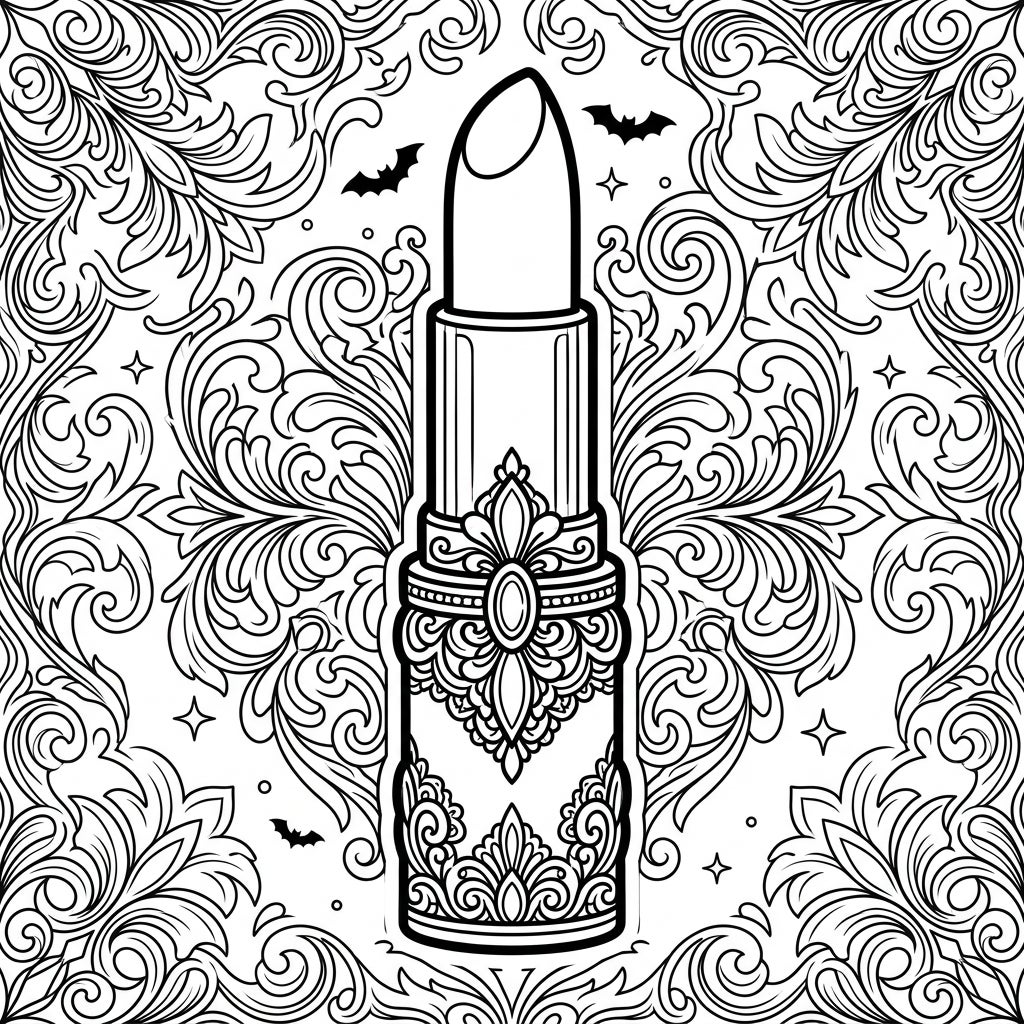 Immerse yourself in the captivating aesthetic of gothic design, transforming this luxurious lipstick into a masterpiece of shadow and light. This coloring page offers more than just intricate lines; it's an invitation to unwind and practice mindfulness. The combination of its sophisticated subject and detailed background provides an ideal escape, fostering a sense of calm and creative satisfaction with every stroke.