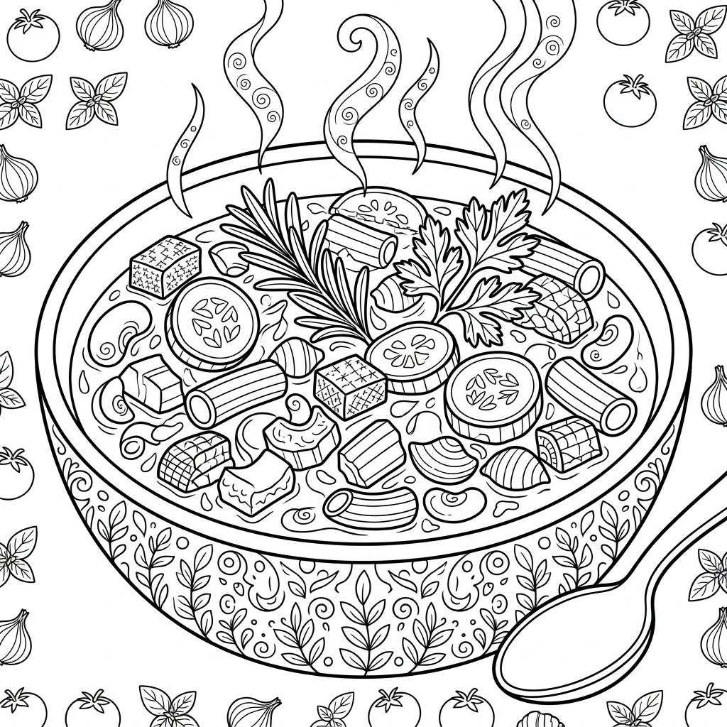 Dive into the rich flavors and intricate details of our Minestrone Soup adult coloring page. This delightful design offers a mindful escape, brimming with fresh ingredients and complex patterns ready for your creative touch.