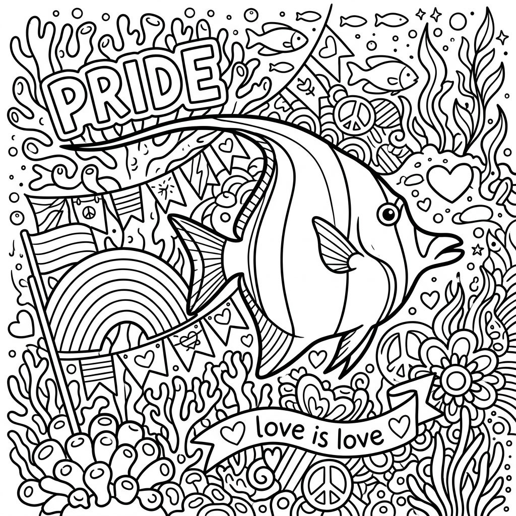 Immerse yourself in the celebratory spirit of Pride with this unique artistic creation. The abundant details invite colorists to express the vibrant joy and inclusivity of the LGBTQ+ community, blending the serene beauty of marine life with powerful messages of acceptance. It's a wonderful way to honor love in all its forms, reflecting themes of unity and respect within a fun and creative activity.