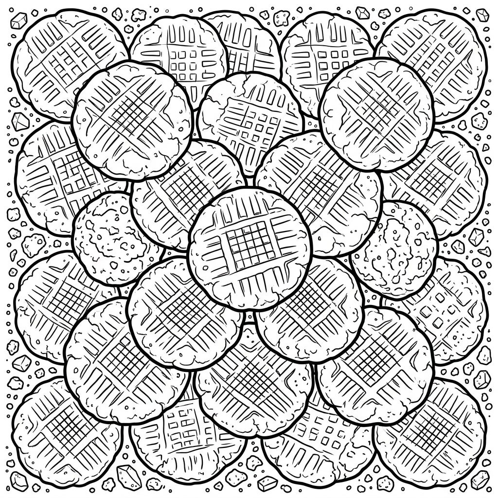 Get ready to color a delightful assortment of classic peanut butter cookies, each with its unique texture and iconic crosshatch pattern. This engaging coloring template is perfect for anyone who loves baking, treats, and a sweet creative challenge.