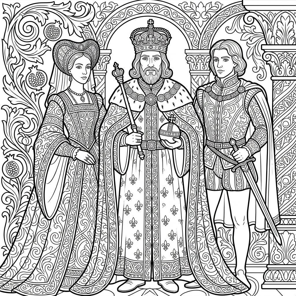 This intricate design invites you to explore the fascinating world of Renaissance history, a time of profound artistic, political, and cultural transformation. These powerful monarchs and influential leaders shaped empires and inspired masterpieces, and now you have the chance to bring their stately presence to life with your own palette. Delve into the rich symbolism and historical elegance of this period, imagining the courtly life and grand decisions made by these figures. It's more than just coloring; it's a meditative journey through a golden age, offering a unique blend of education and artistic enjoyment.
