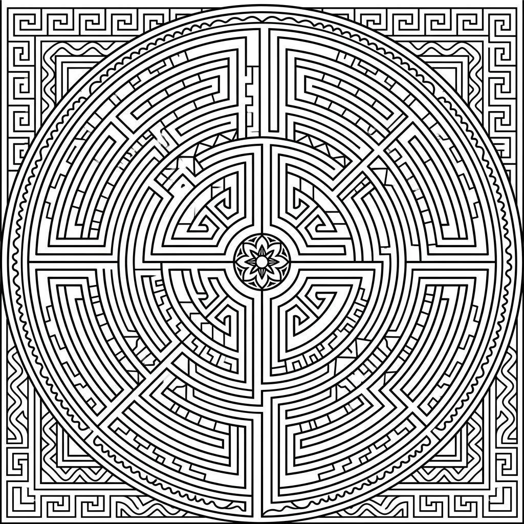 Unravel the beauty of ancient Roman design with this captivating labyrinth coloring page. Its intricate geometric patterns offer a meditative and engaging artistic challenge.