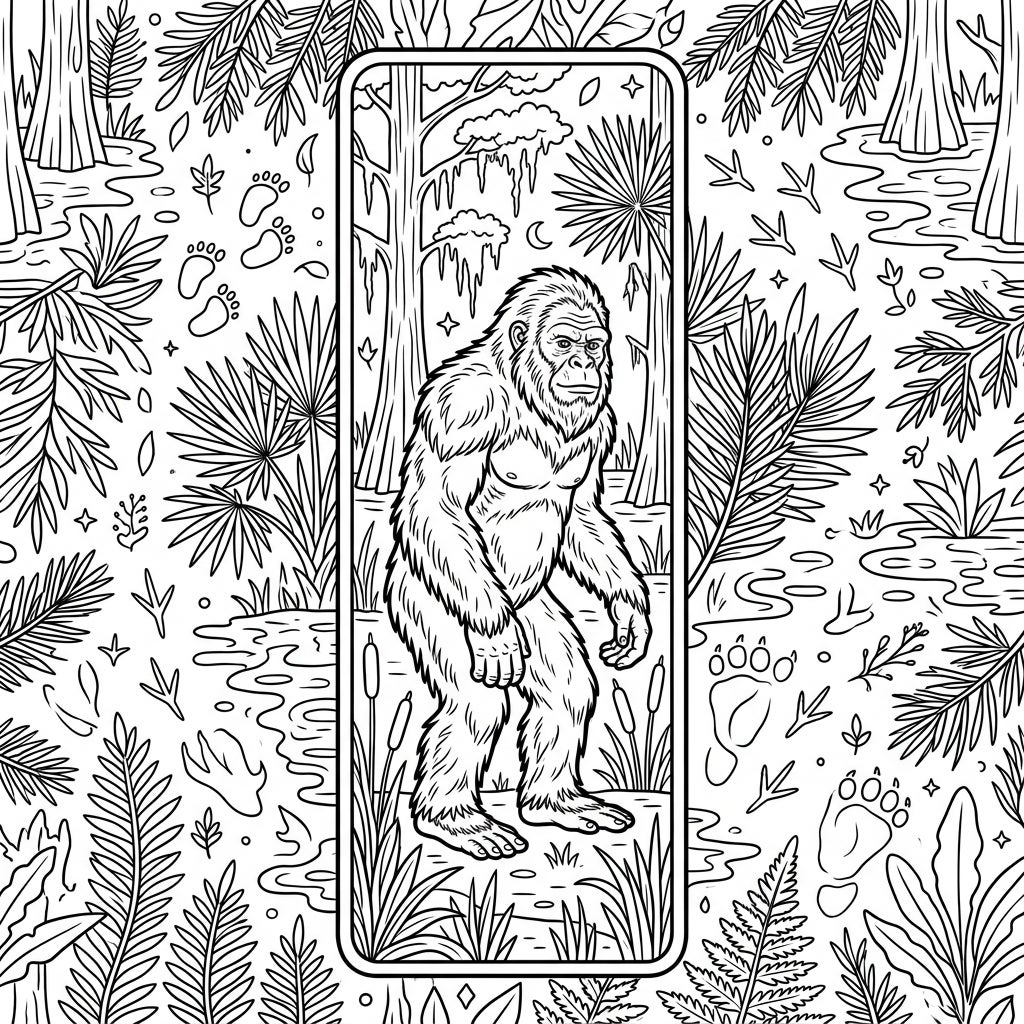 This unique coloring experience invites teens to delve into the thrilling world of cryptids and folklore. The Skunk Ape, a creature steeped in legend from the deep South, evokes a sense of wilderness and enigma, providing a captivating subject that goes beyond ordinary coloring. As you bring this swamp scene to life, imagine the quiet rustle of leaves and the humid air, letting your colors tell the story of this mysterious beast in its hidden habitat.