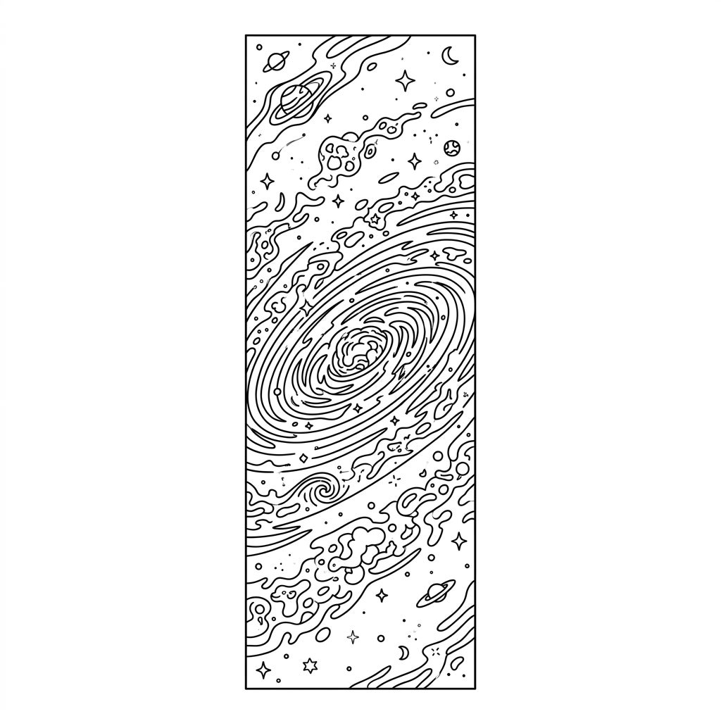 Embark on an intergalactic adventure with this captivating spiral galaxy coloring bookmark. Its intricate design features a swirling cosmic core, surrounded by a universe of stars, planets, and nebulae, ready for your creative touch.