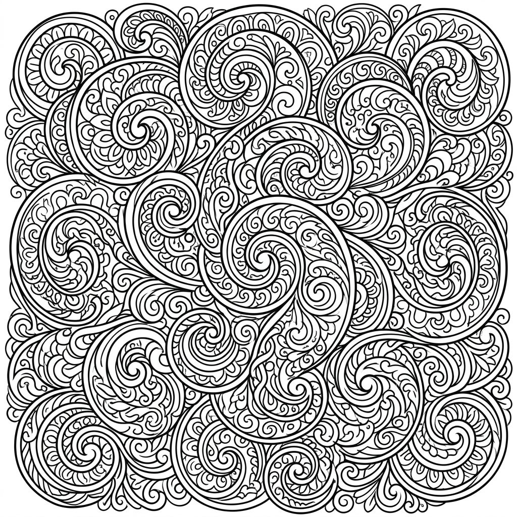 Dive into a world of mesmerizing details with this adult coloring page featuring intricate spiral patterns. Perfect for unwinding, this design offers a delightful challenge for experienced colorists.