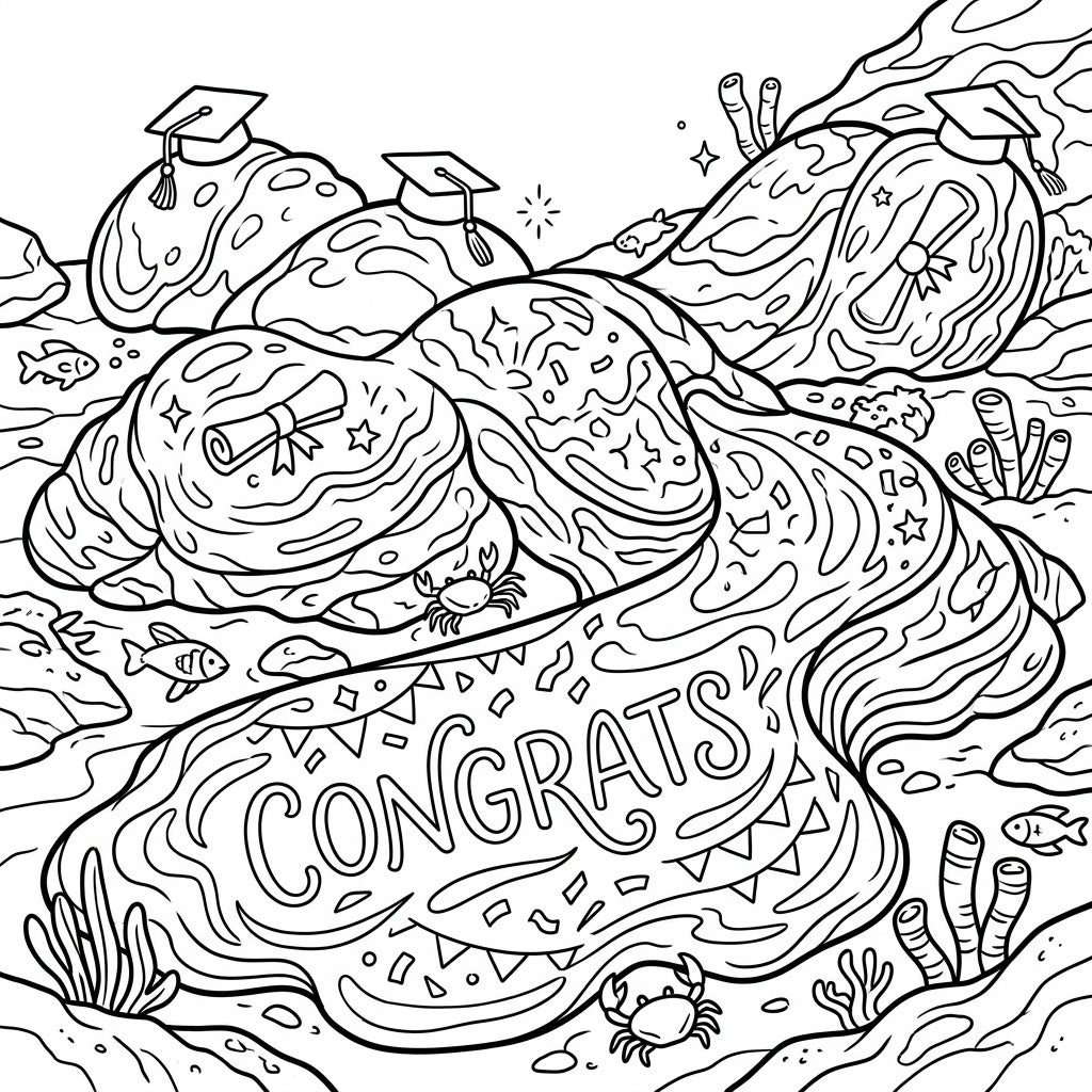 This coloring template offers a truly unique way to commemorate the momentous occasion of graduation. It captures the spirit of achievement and future possibilities, set against the mysterious and vibrant backdrop of the ocean floor. The juxtaposition of fiery lava and cool ocean depths creates a dynamic and imaginative landscape, perfect for anyone who loves both natural wonders and heartfelt celebrations. Whether you're honoring a high school, college, or any significant academic milestone, this page provides a fun, unconventional tribute to hard work and success.
