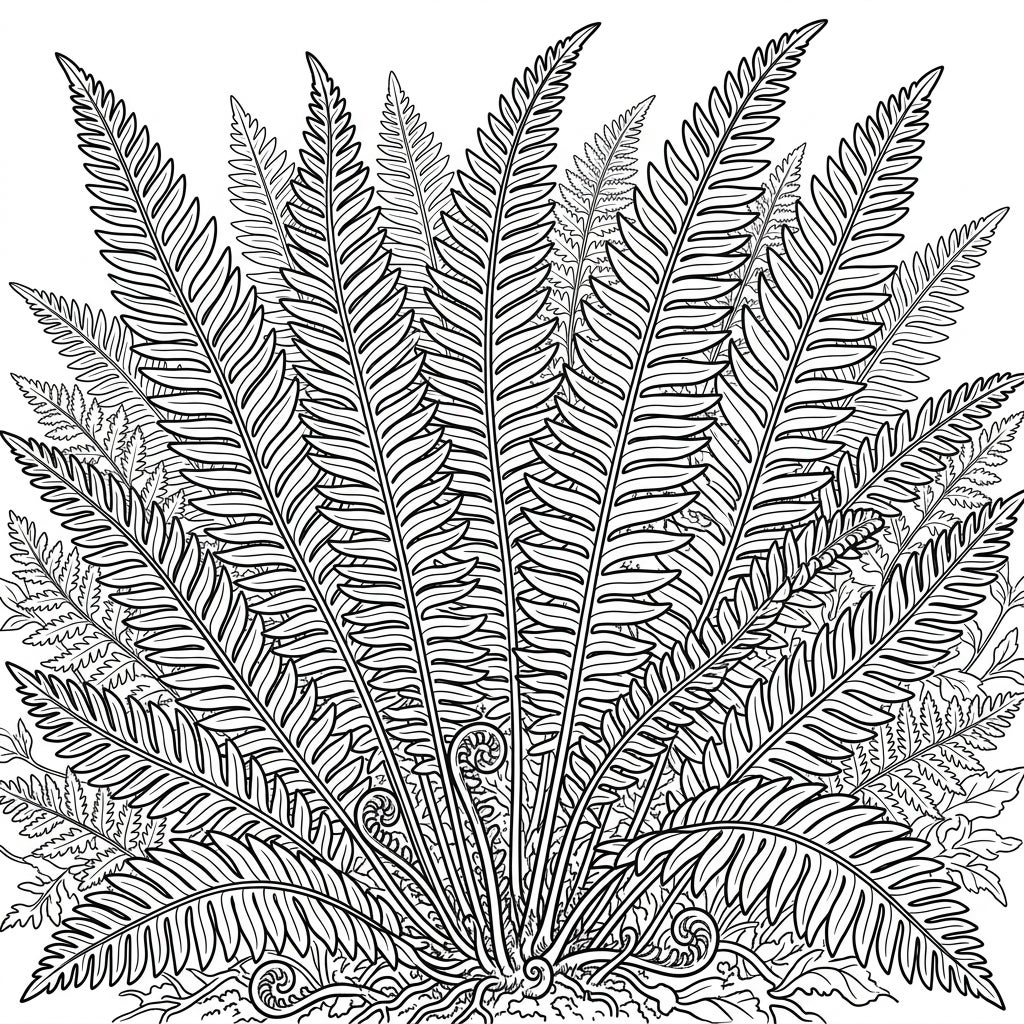 Immerse yourself in the lush world of sword ferns with this beautifully detailed coloring page. Perfect for nature lovers and those seeking a calming, creative escape.