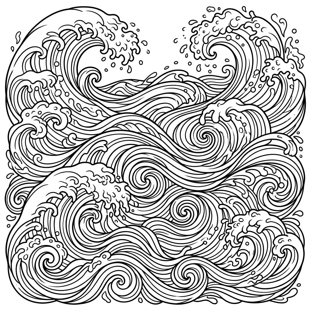 Perfect for teens seeking a creative outlet, this intricate design provides both a relaxing escape and an engaging challenge. As you color each unique wave and curl, you'll feel transported to the tranquil yet awe-inspiring world of the ocean. Whether you envision a serene seascape bathed in moonlight or a vibrant, sun-drenched beach, this coloring page sets the mood for introspection and imaginative expression, allowing you to connect with the fluid energy of nature.