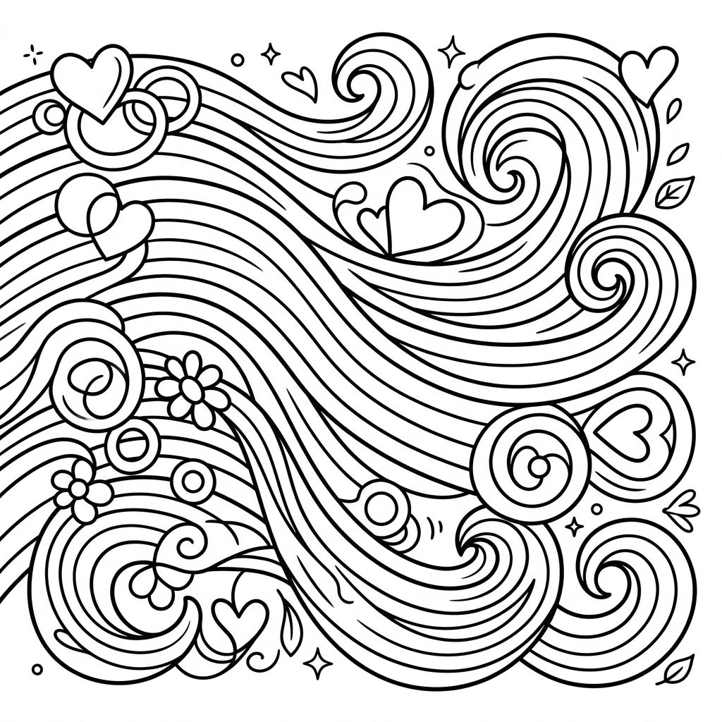 Immerse yourself in a captivating design where the powerful Westerlies come to life through elegant, swirling line art. This full-page illustration features dynamic currents, flowing gracefully across the canvas. Interspersed among these powerful wind patterns, you'll discover charming hearts, delicate floral accents, and sparkling star shapes, all waiting for your artistic touch to bring them to vibrant life.