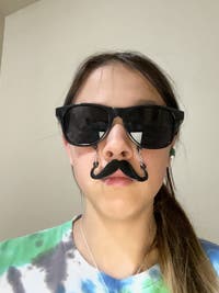 Tan brown eyes brown hair with purple