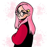 4 || clothing baby pink || skin tan with a few tattoos (idk what is on the tattoos) with brown eyes || light brown hair with pink bangs