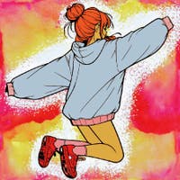 realistic girl floating