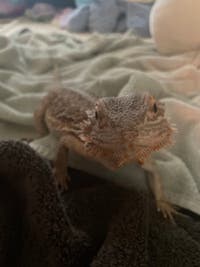 cute gecko in girl arms