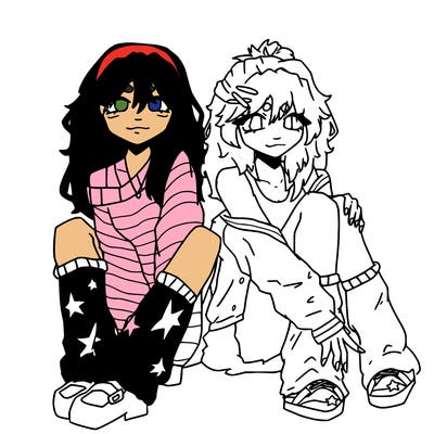 bubble letters saying stray kidsgirl and a boyrealistic angel half demon