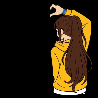 roadroadroadrealistic girl  with hip length hair a bun and a big bow on the back of head