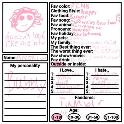 Hi my name is Brooklyn, and I’m 14, single , I like candy, burgers, and I especially LOVE ANIME AND MANGA I hope you enjoy my art😚