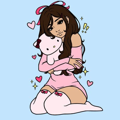 sanrio kuroumirealistic angel half demoncute flowerlong haired girl with horns and magic orb in her handa group of girls wearing crop tops and shortsa girl with long hair holding a plushie also anime styleddevil vs angel realistic girlgirl in baggy pants crop top and long hair