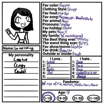 I like cats and dogs and i like drawing and colouring A LOT. im an EYEKON and a Monstiet. I read wings of fire and warriors 🦐🗡️🌸